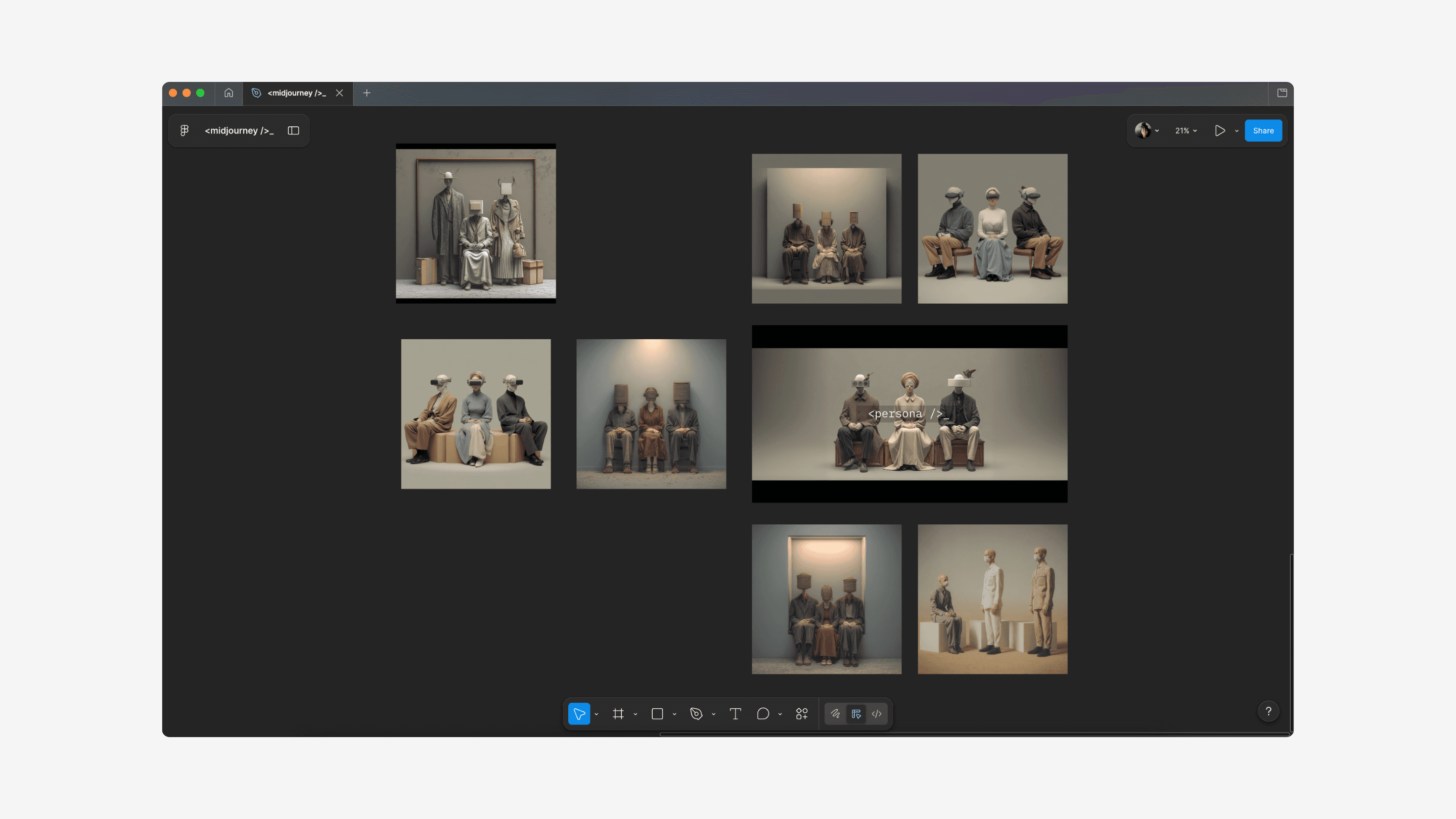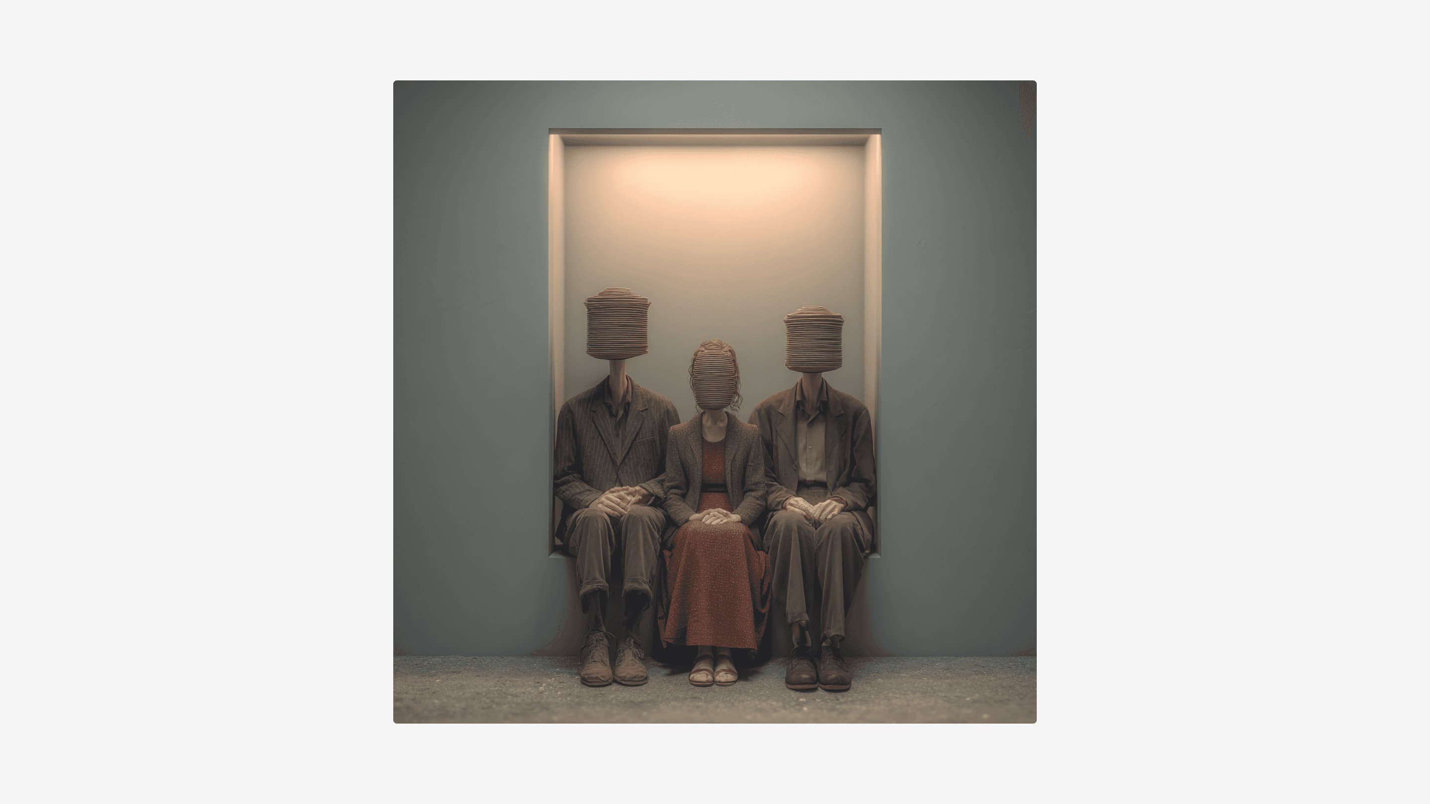 Persona explores the architecture of perception. Using structured prompt engineering in Midjourney, the series examines how individuals can occupy the same physical space yet experience entirely different realities. Figures appear composed, evenly placed, and visually aligned, but subtle variations in posture, visibility, obstruction, and orientation suggest distinct internal perspectives. These deliberate adjustments mirror how mindset, bias, and personal history alter interpretation without changing the environment itself.